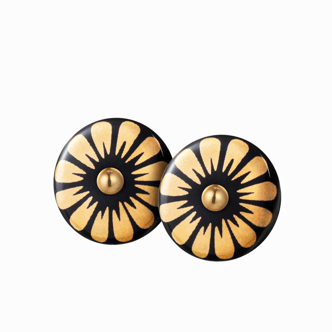 Ørestikkere af indfarvet sort porcelæn med SCHERNING's klassiske BLOOM dekoration i blank guld.