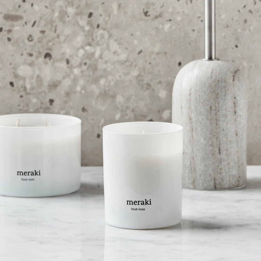 Skab en rolig oase i dit hjem med den blide duft af frisk sengetøj. Dette duftlys kombinerer opfriskende topnoter af citron og appelsin med et hjerte af jasmin og roser, hvilende på en base af musk og vetiver.