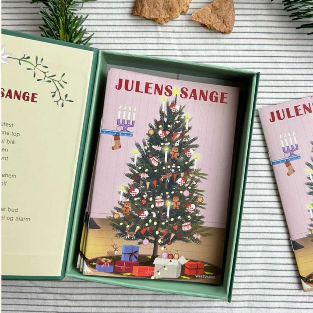 Vores julesange ligger lunt og godt i en en fin æske, som kan findes frem år efter år. Den kan også stå i bogreolen.