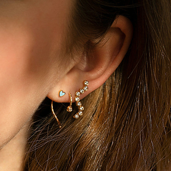 Fin lille hjerteørestik med blå emalje i hjertet.