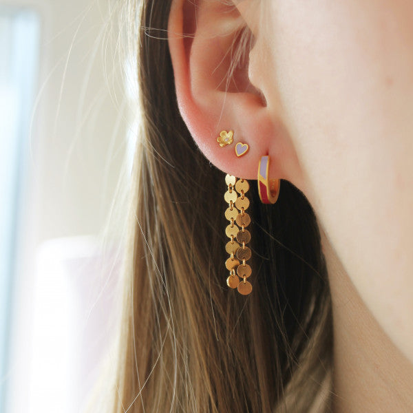 Fin lille hjerteørestik med lilla emalje i hjertet.