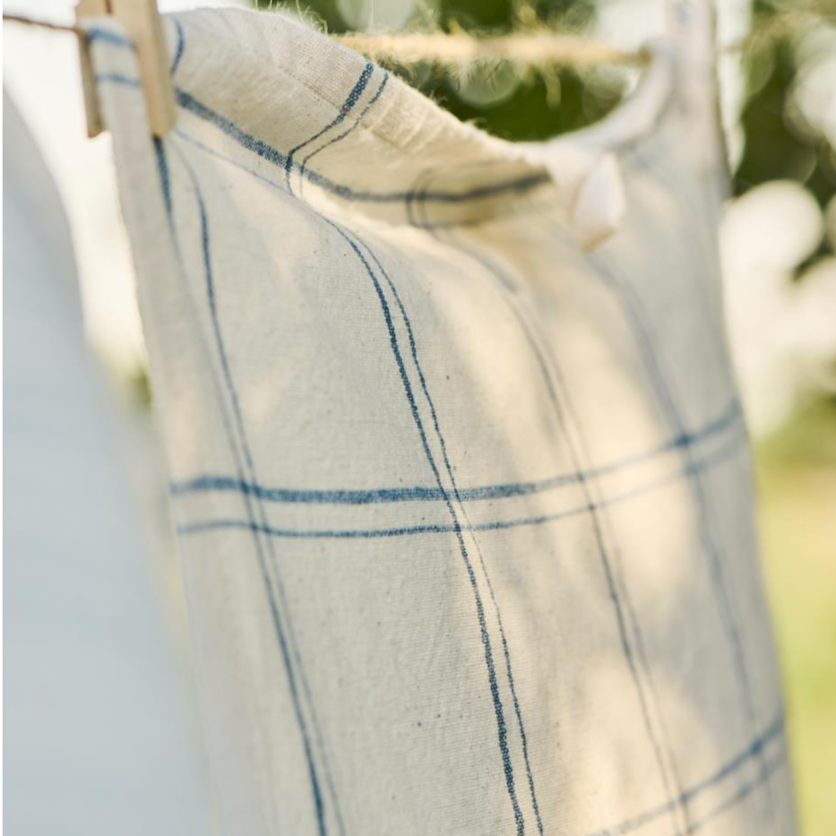 Viskestykke Ebbe natur m/mørkeblåt ternet mønster